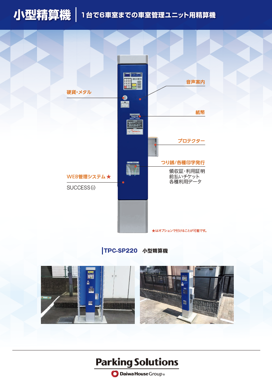 1台で99車室までの車室管理ユニット用精算機 |