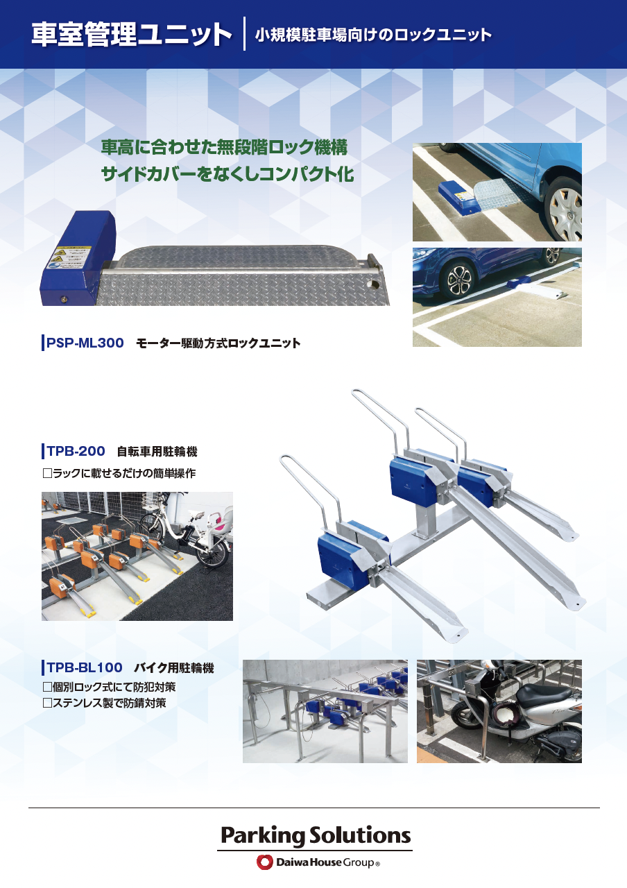 小規模駐車場向けのロックレスユニット「バリアフリー」「ストレスフリー」「トラブルフリー」 |