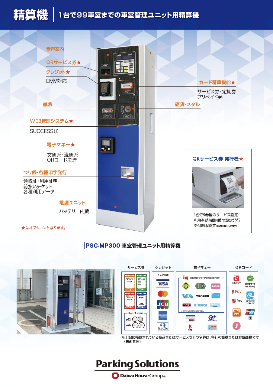 1台で99車室までの車室管理ユニット用精算機 |